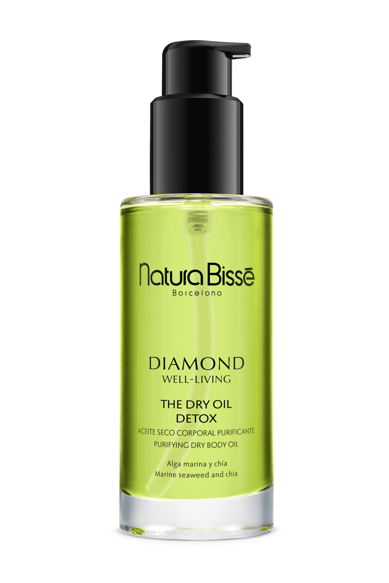 De The Dry Oil Detox is een zuiverende, droge olie verrijkt met zeewier en chiazaad.